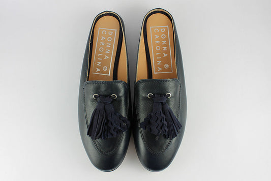 'Lia' Leather Mule in Navy