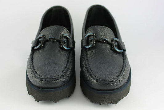 'Veronica' Navy Leather Loafer on a Wedge