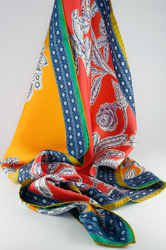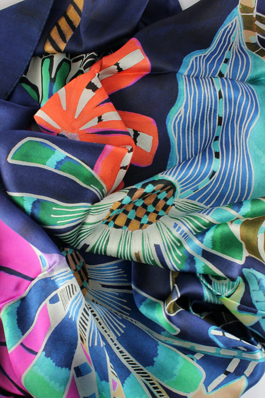 'Leaf Motif' in Navy & Coral