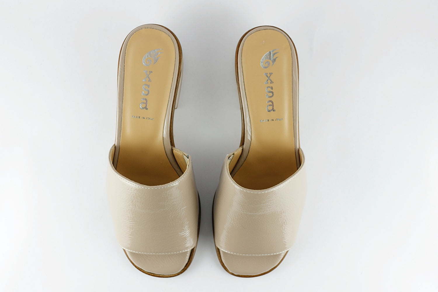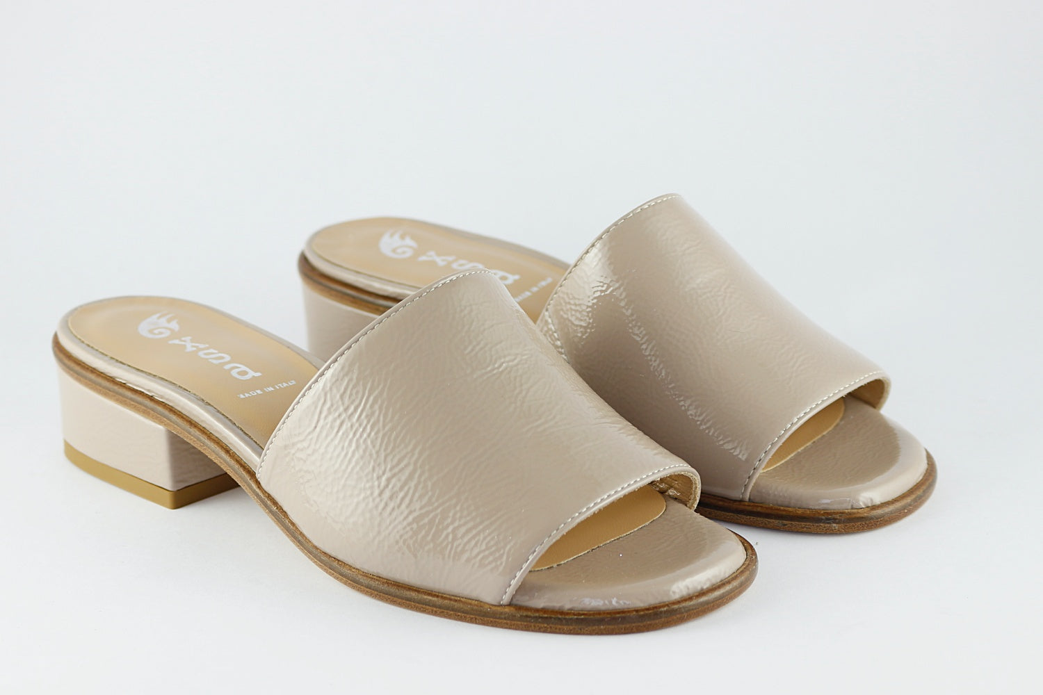 Each mule has a matching colour base at the toe, matching trim and matching heel colour. The heel is 3.5 cm. It is leather-lined and soled. Super-chic.