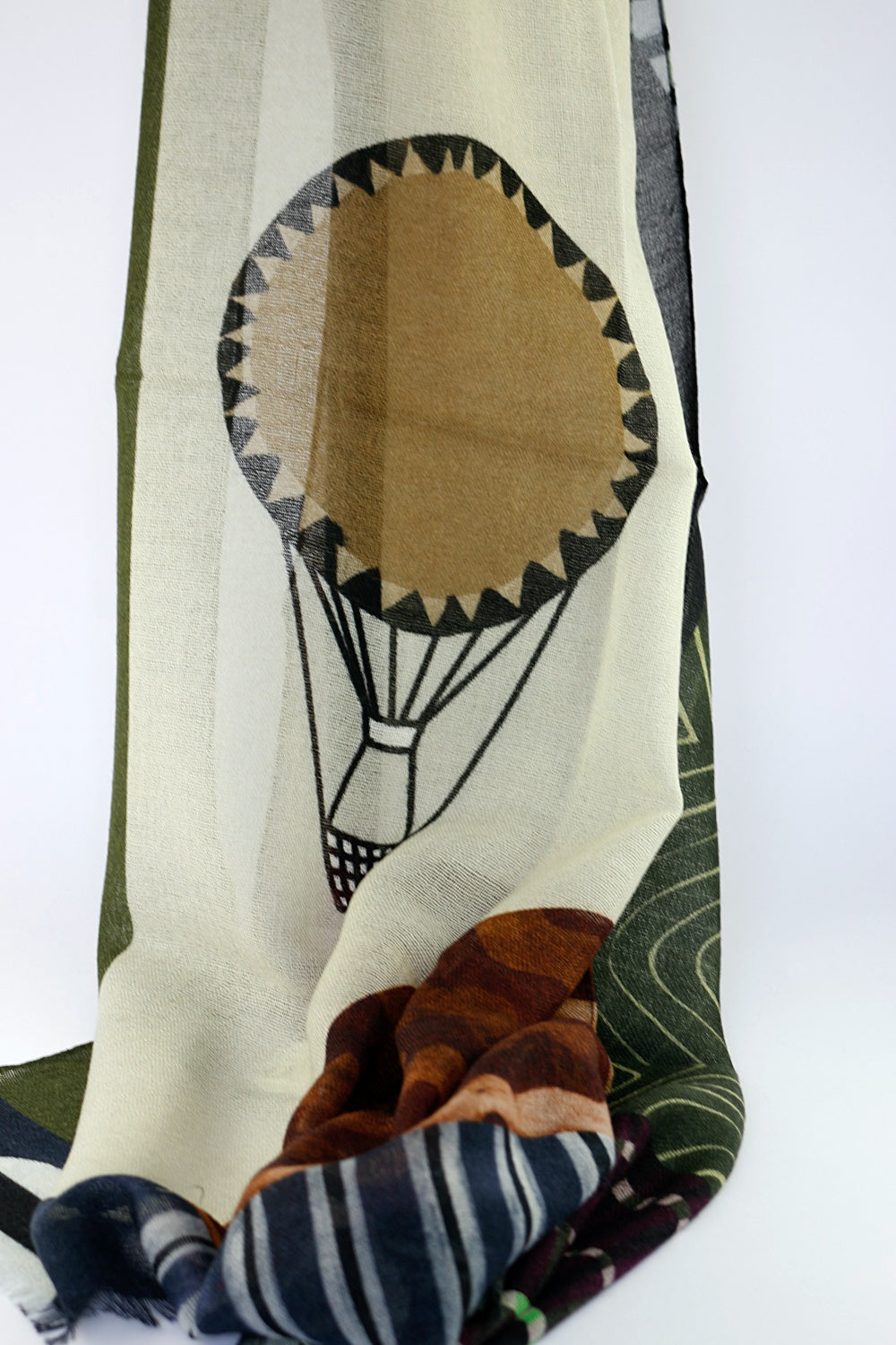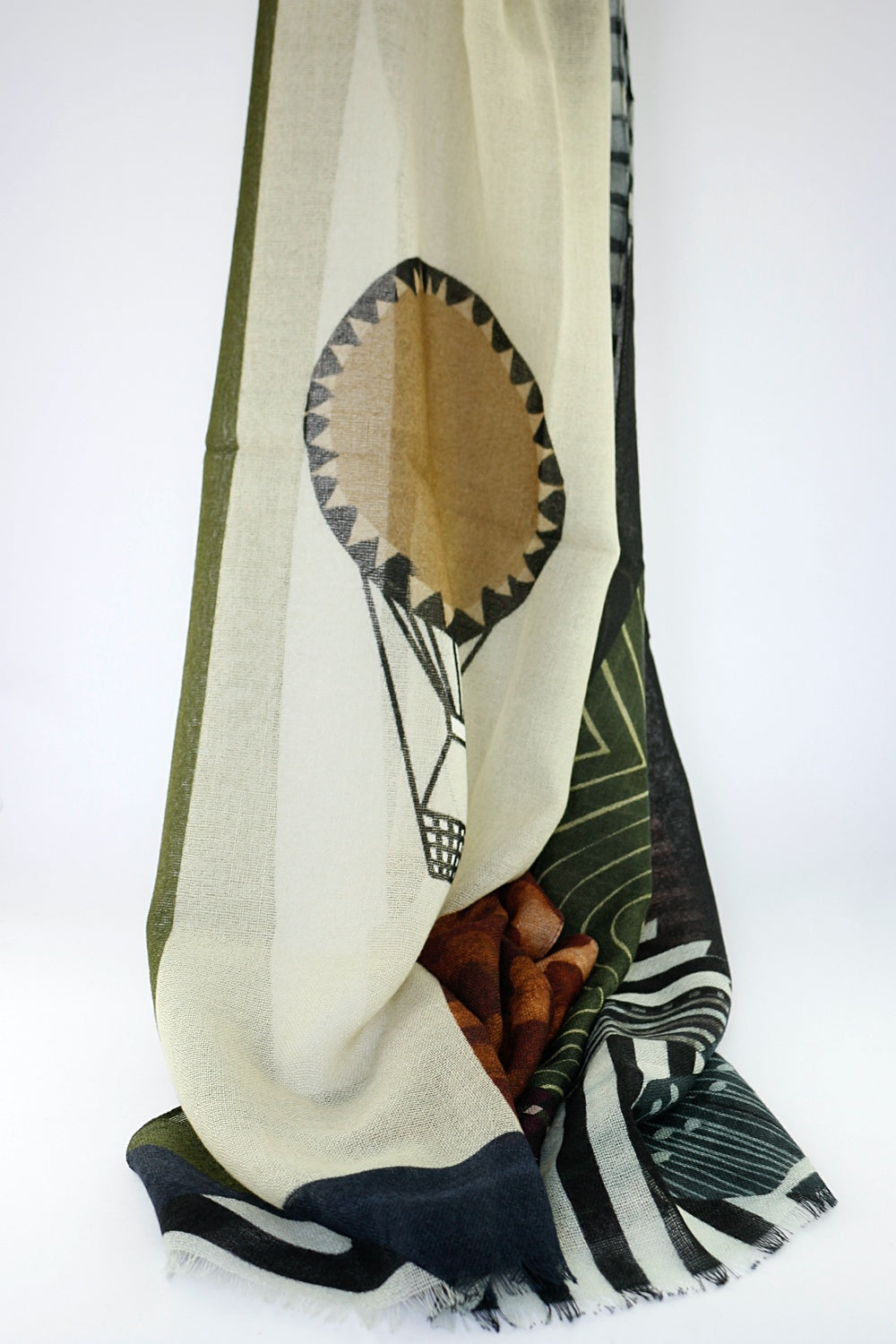 Barbieri's 'Balloon' is a soft woollen scarf in an abstract design in beautiful autumnal dusky colours of greens, blues, damsons, pinks, browns and stone, with just a little charcoal and orange. This will work with all your autumn/winter wardrobe and just give your look a little lift.