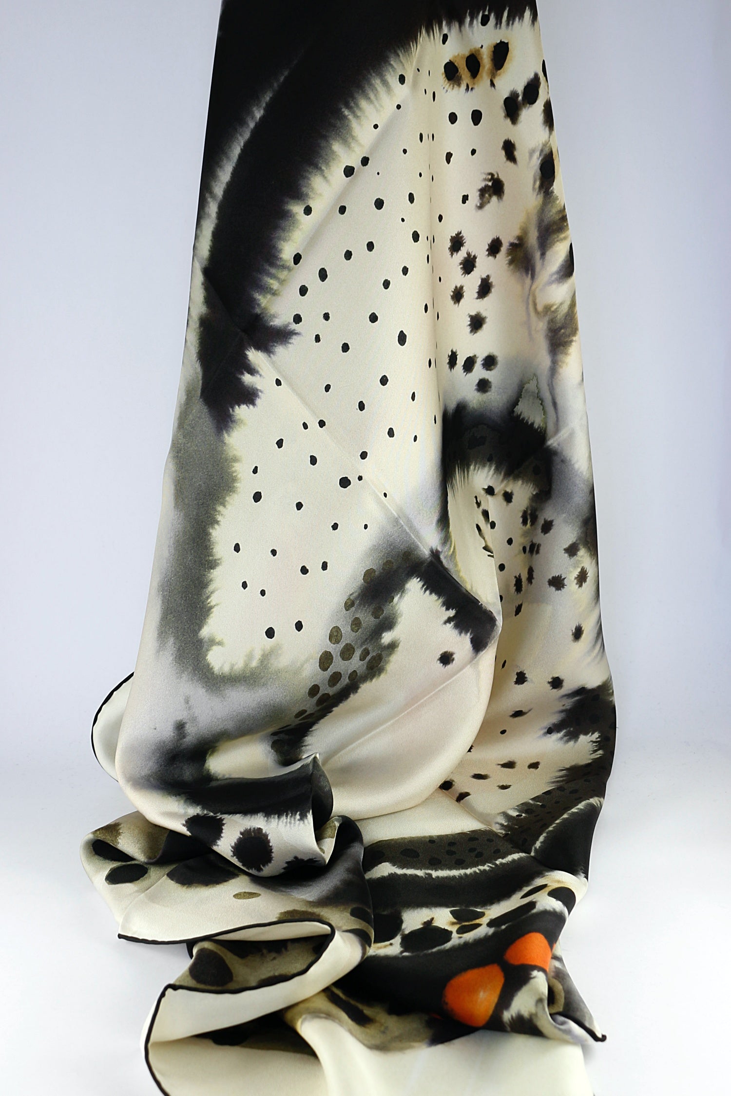 100% silk twill, silk square: 100 cm x 100 cm.