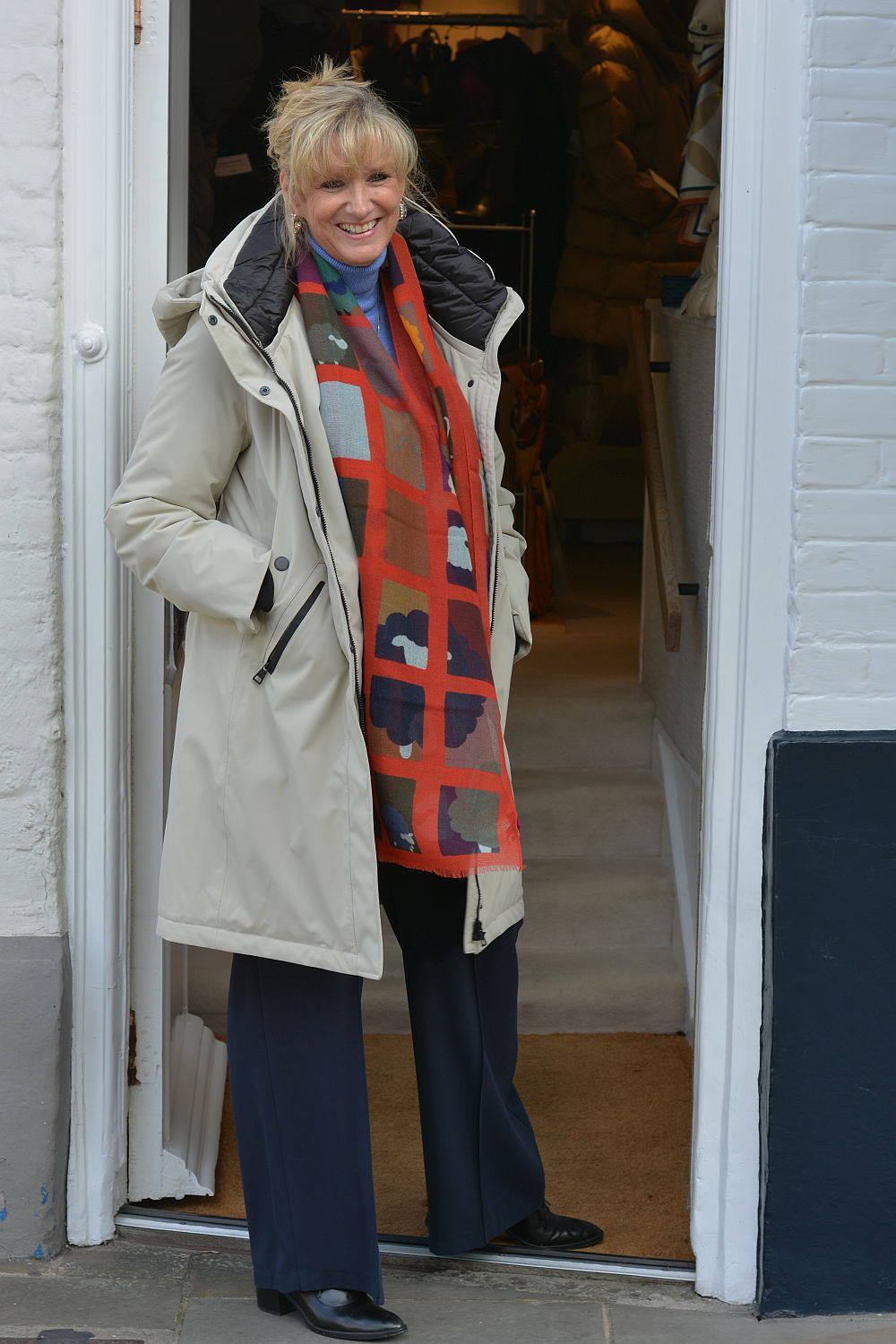 'Evanna' is sophisticated, waterproof rainwear designed with elegance and precision. Waterproof taped seams and pocket zippers offer full protection without compromising on style. It features a detachable inside collar and hood for versatility, and has a refined box pleat at the back to add subtle structure. It has four pockets on the front, two zipped and two that popper to close. There is also a small inside zipped pocket for valuables.