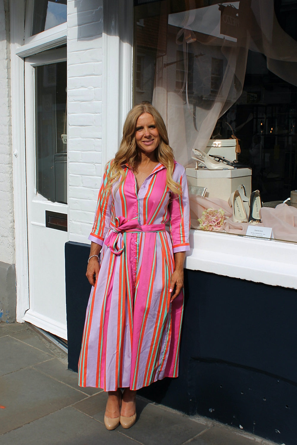 The 'Veneto' striped shirt dress in pink, orange, pale mint green and lilac is another standout piece from Milano. Be the best dressed wherever you wear it.