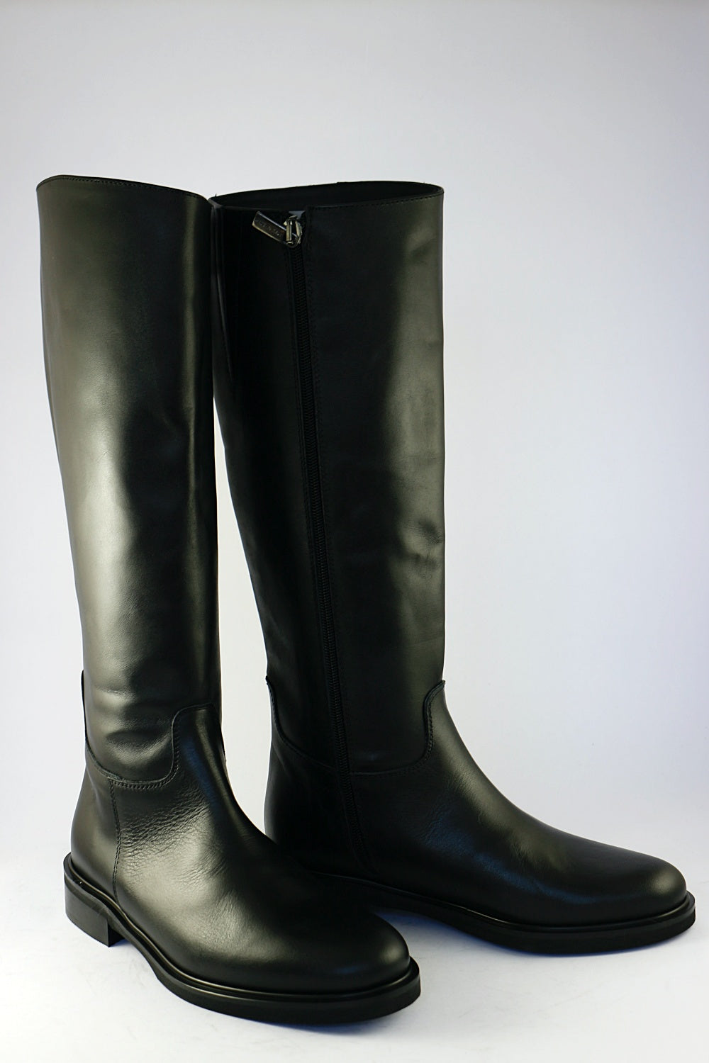 Gianluca Pisati's 'Barbara' in Black is a long leather boot with a round toe and a flat heel of 3cm. It has a zip on the inner seam and is leather-lined with a rubber sole. A classic long boot for the winter.