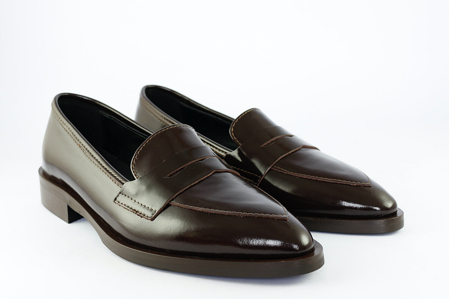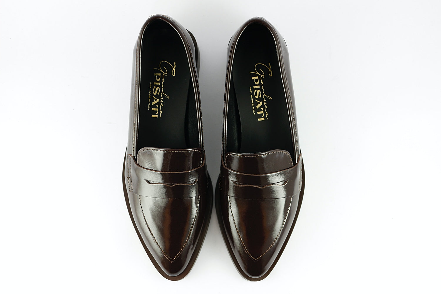 Gianluca Pisati's 'Timo' penny loafer comes in a rich patent leather Mahogany with a pointed toe. Very this season to update any outfit effortlessly.