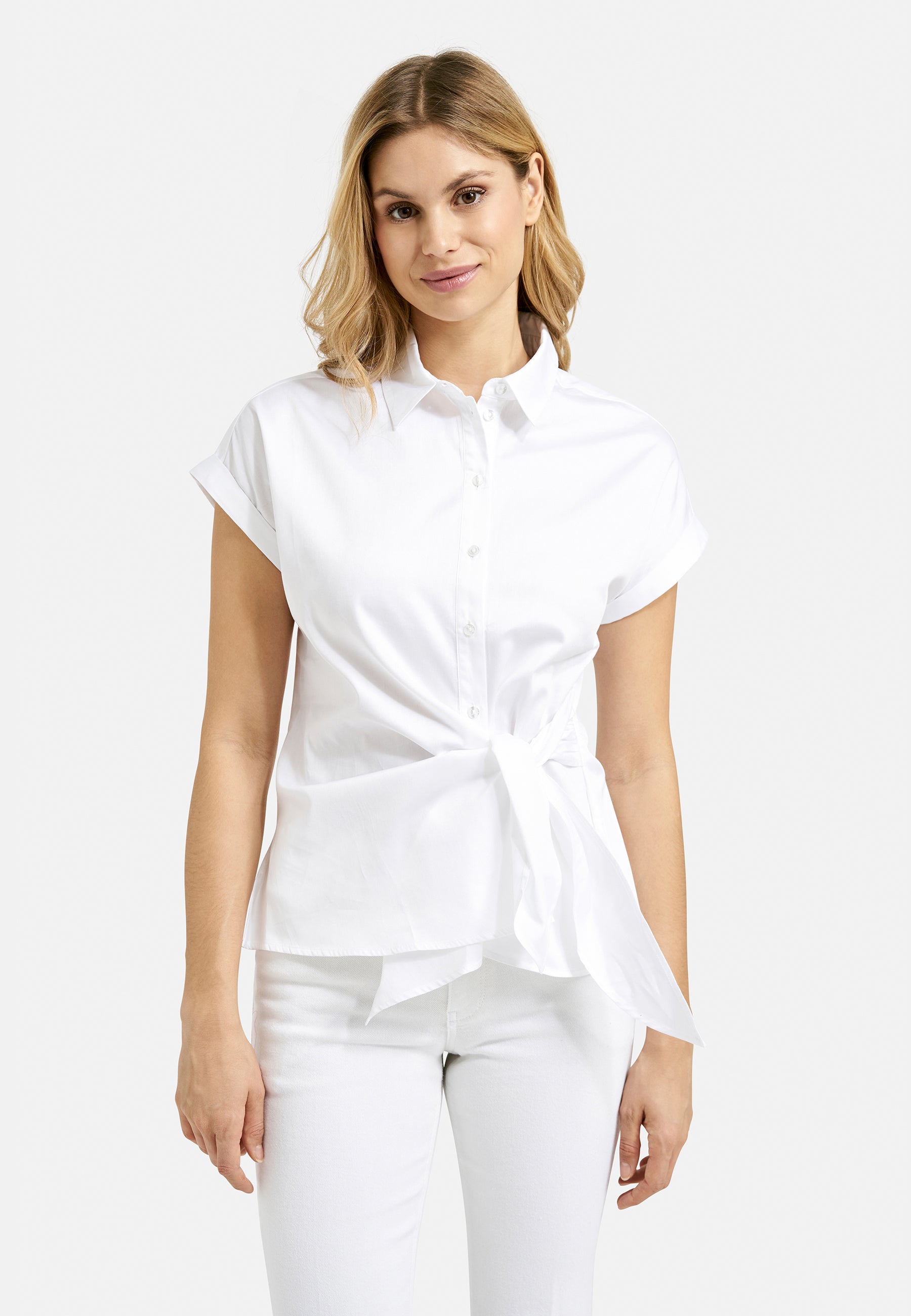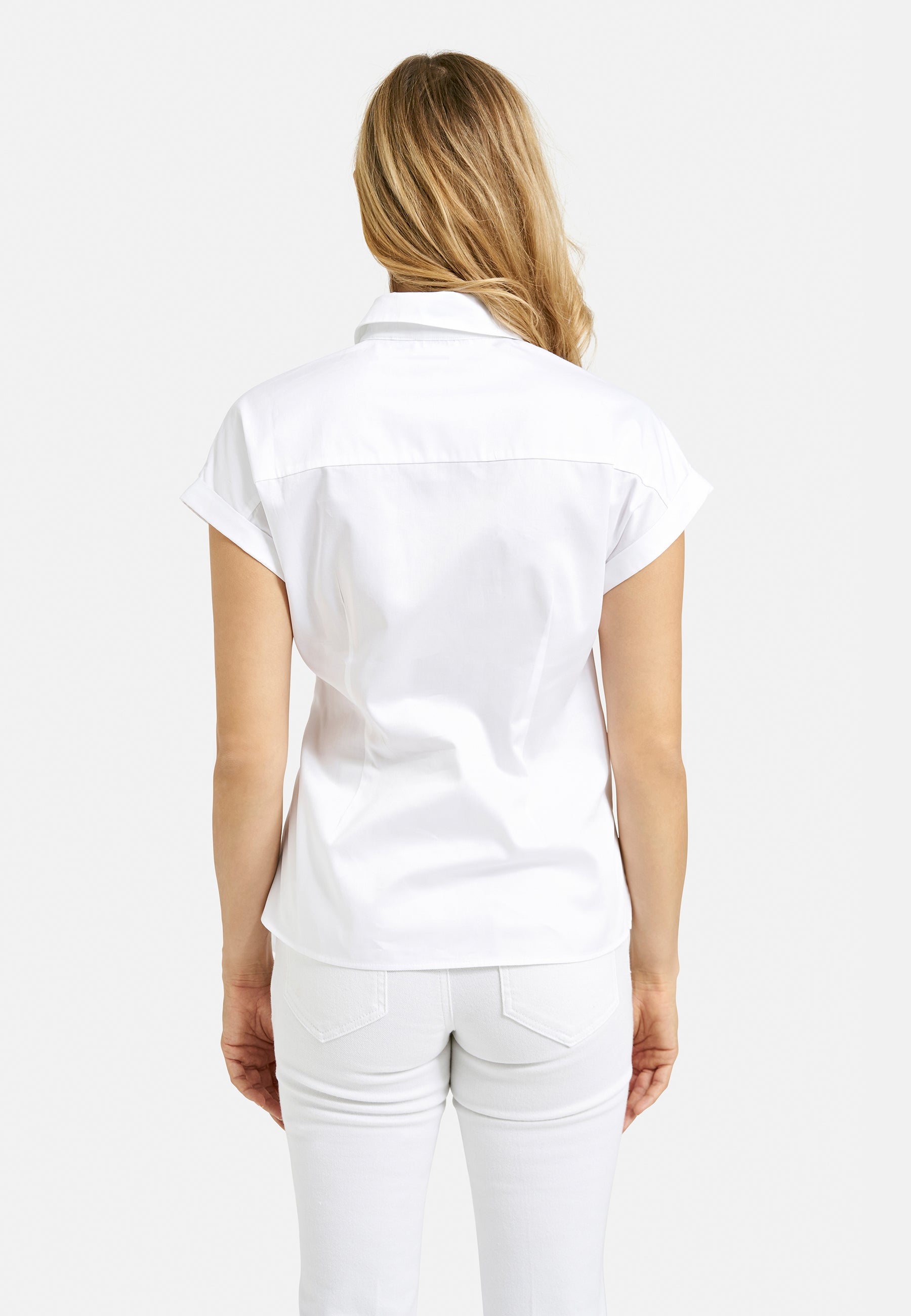 The Milano 'Paris' shirt in White is a classic with a twist: buttons to the collar, with a tie on the side for a perfect silhouette. It is cap-sleeved.