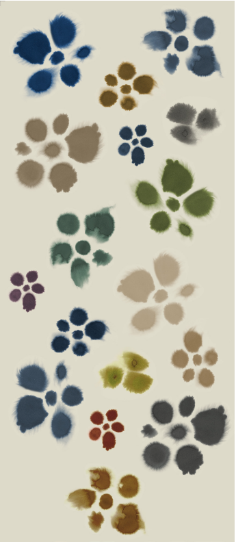 Barbieri's 'Masterpiece' is a made up various dots resembling flowers on a pale Sage background. Gorgeous dusky colours including: cobalt and inky blues, olive, grey, forest green, camel, brown and bordeaux. Super luxe in terms of softness and design. This is wool twill known for its smooth hand feel and warmth. A real masterpiece.