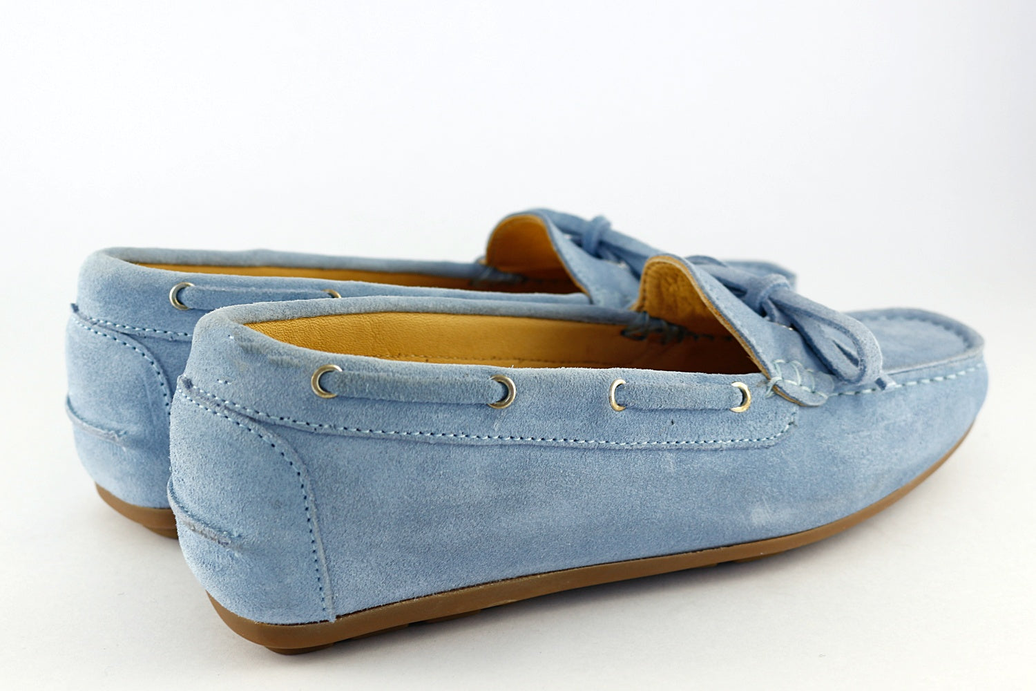 This one is a beautiful soft suede in Sky Blue ('Celeste'), with leather inners and a rubber ('hovercraft') sole.