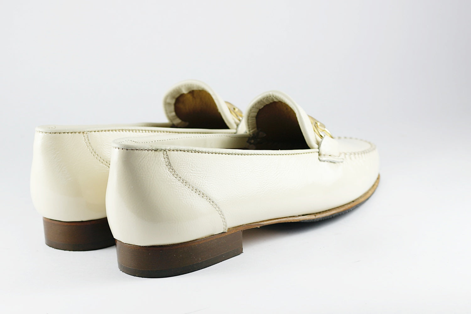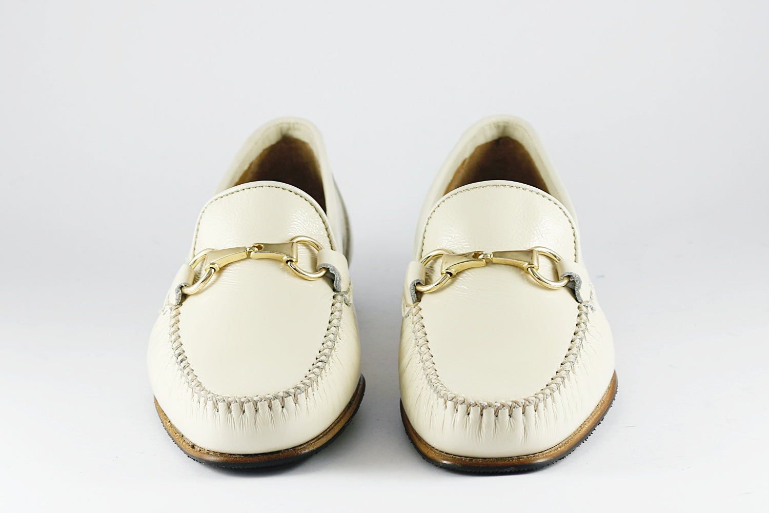 Classic ivory leather loafer with a gold snaffle from Pascucci. Leather-lined, with a leather sole overlaid with non-slip rubber panels.