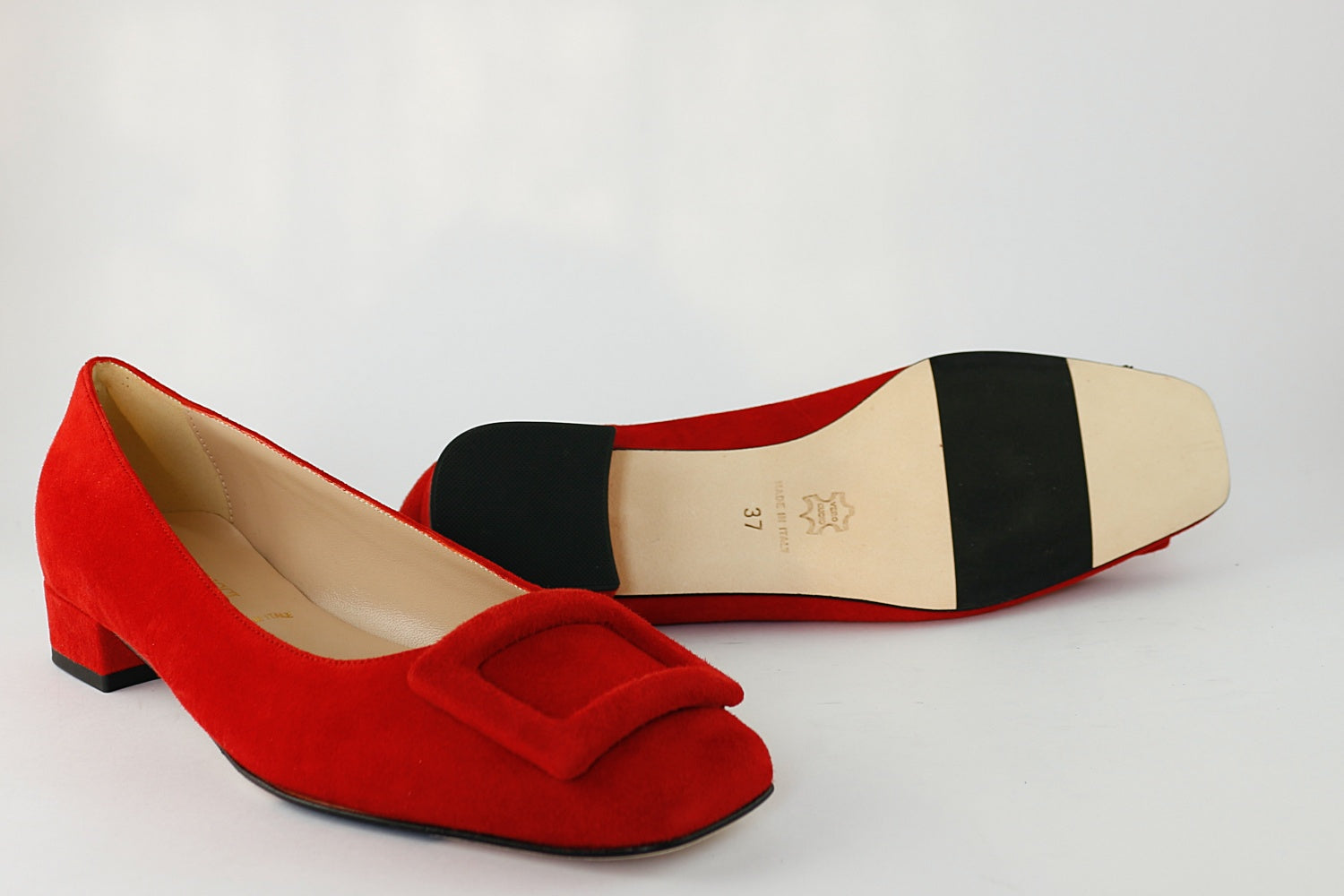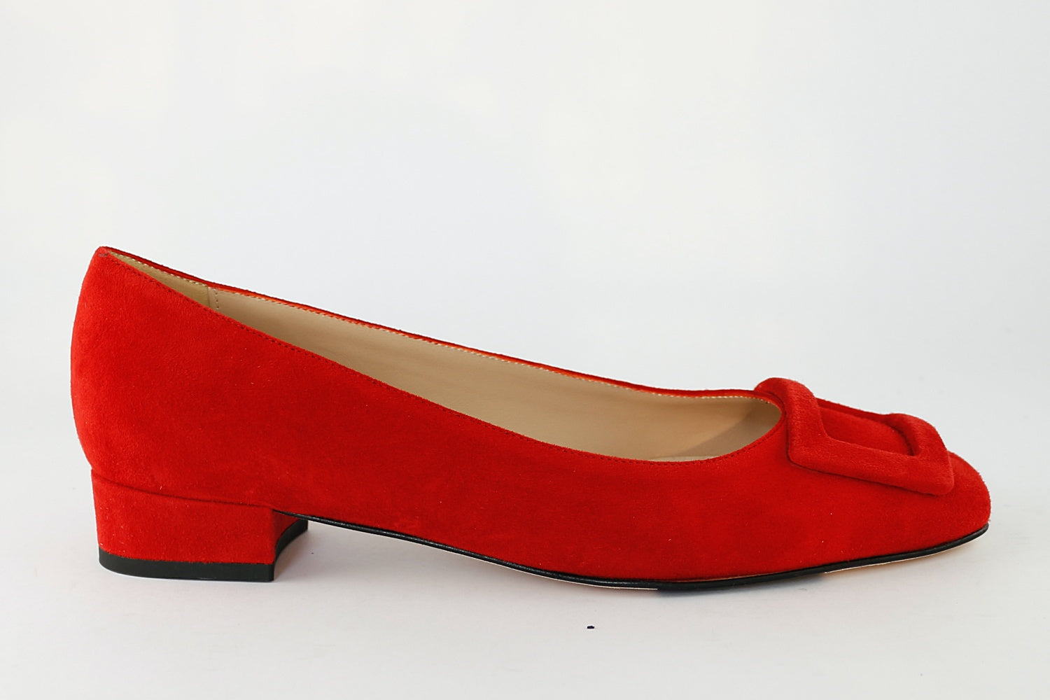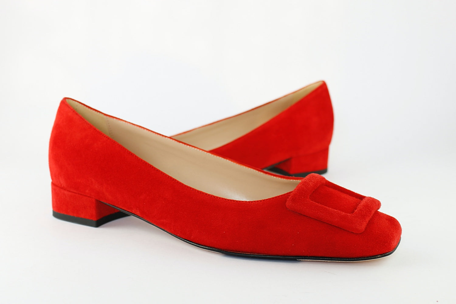 It is available in two colours: Red and Navy. The suede is beautifully smooth and the buckle detail is perfect.