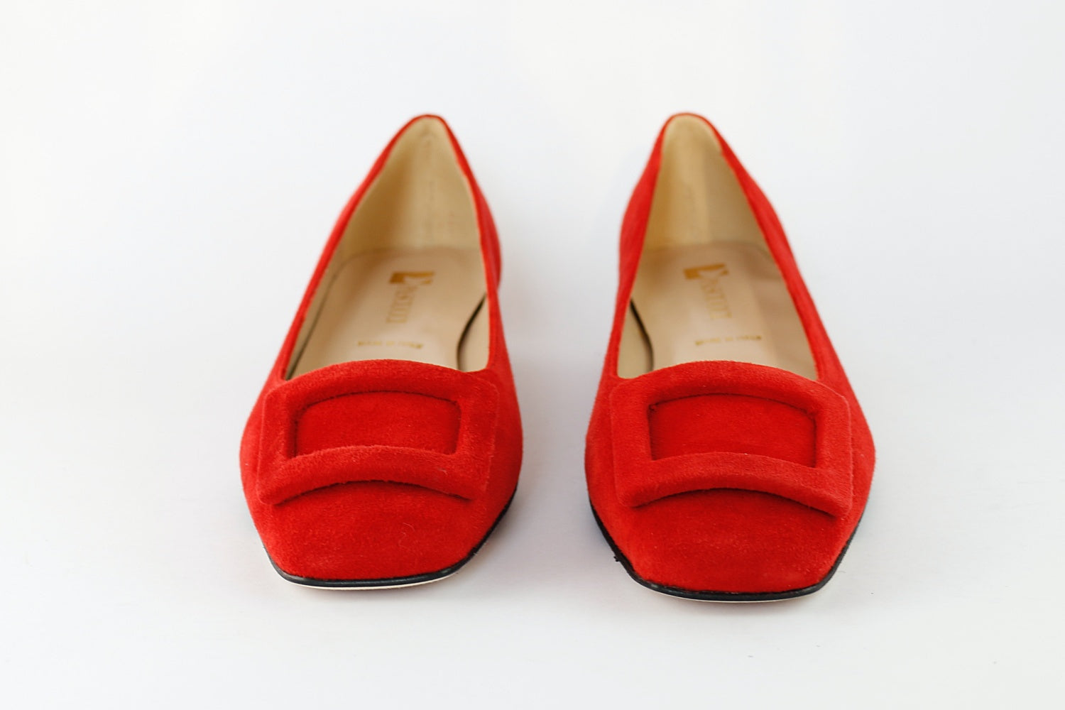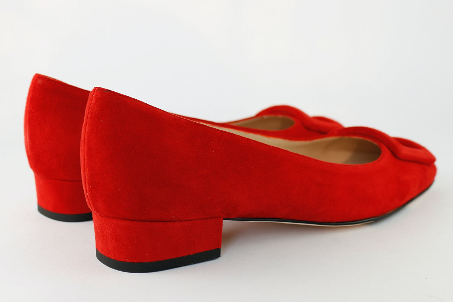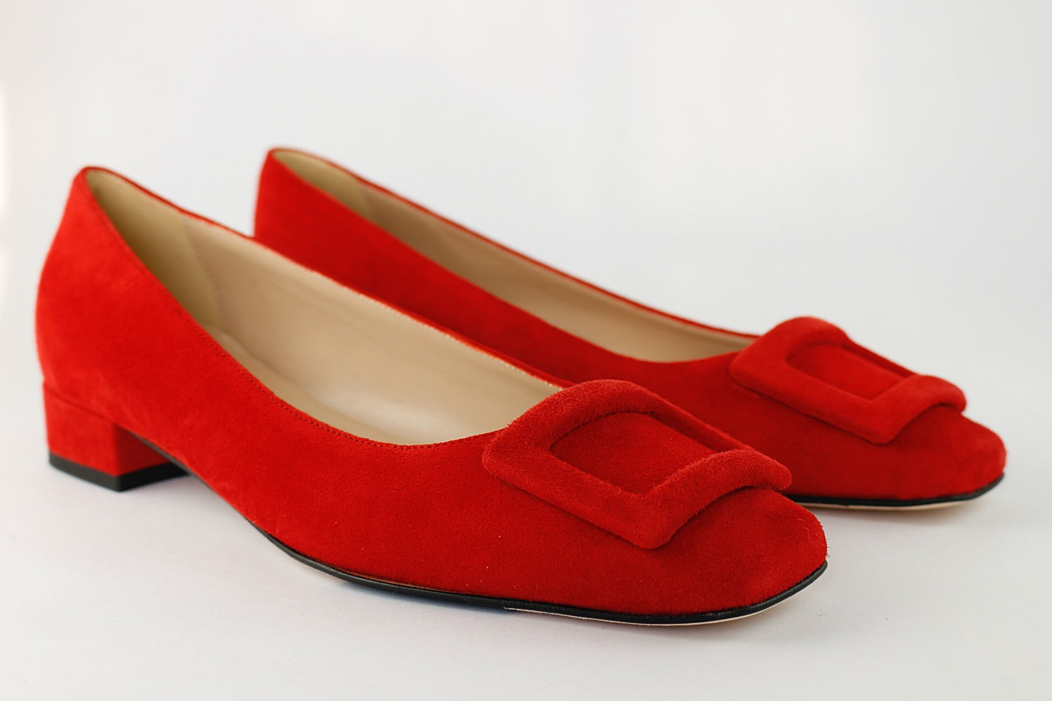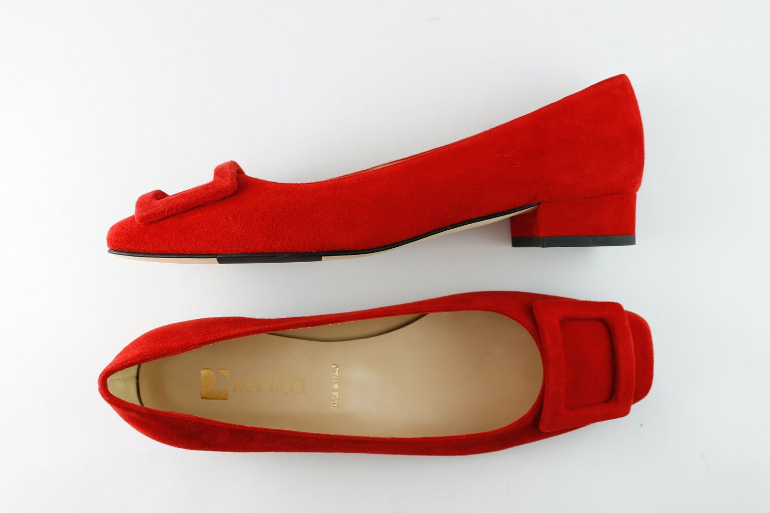 It is available in two colours: Red and Navy. The suede is beautifully smooth and the buckle detail is perfect.