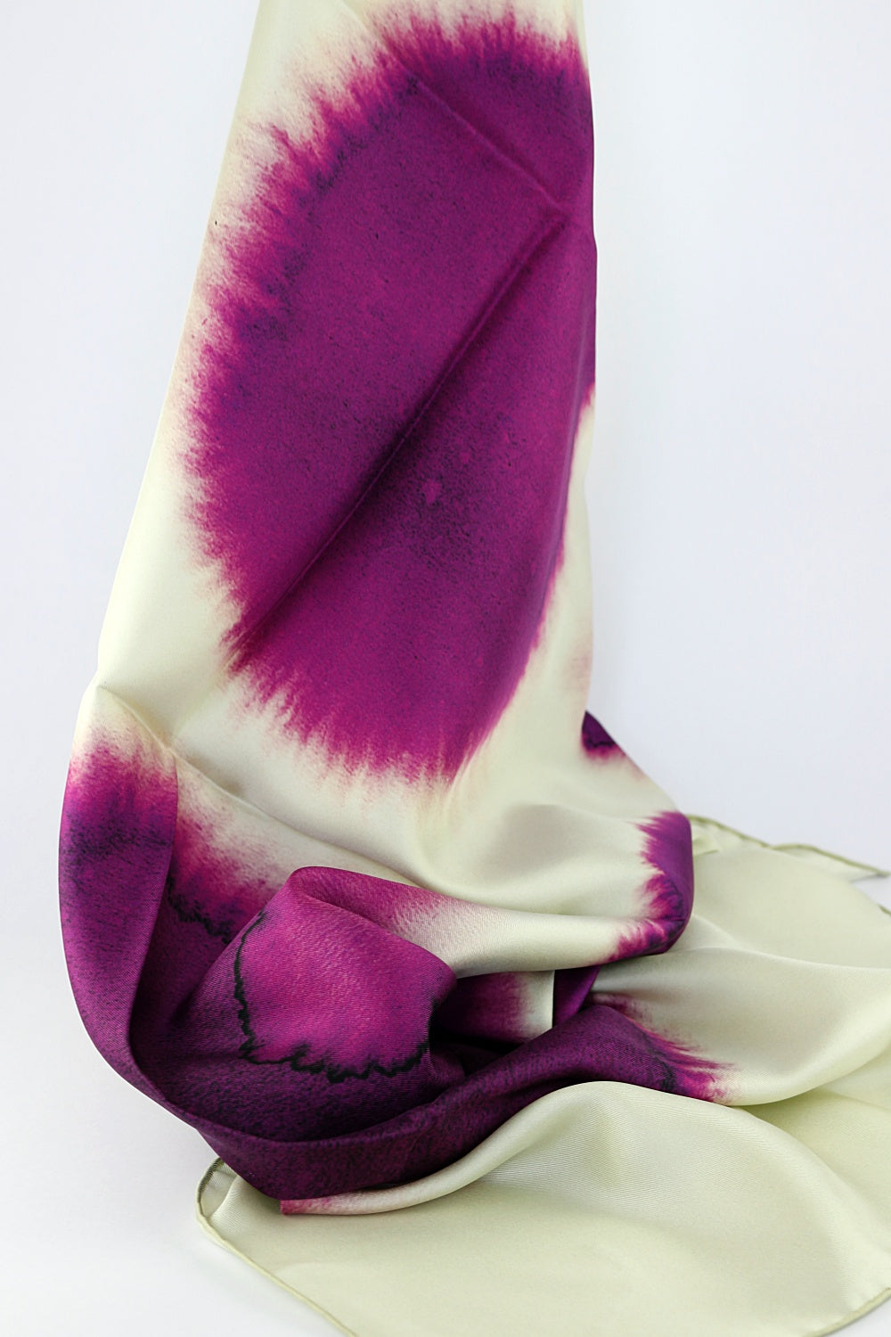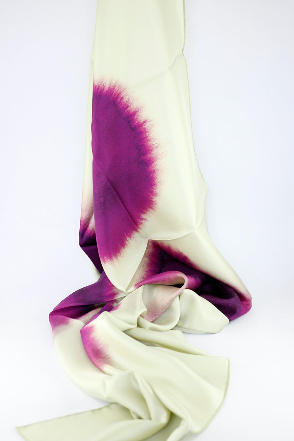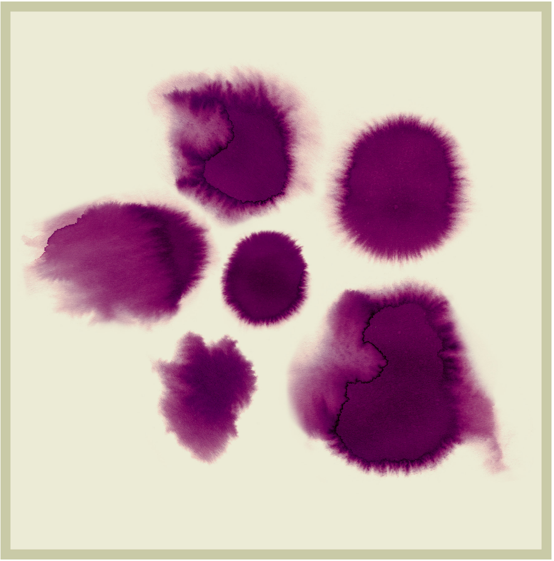 Barbieri 'Silk Splash' has a Pale Matcha (green) background with bright Pinky Purple ink splashes of different sizes, shapes and tones. Very dramatic.