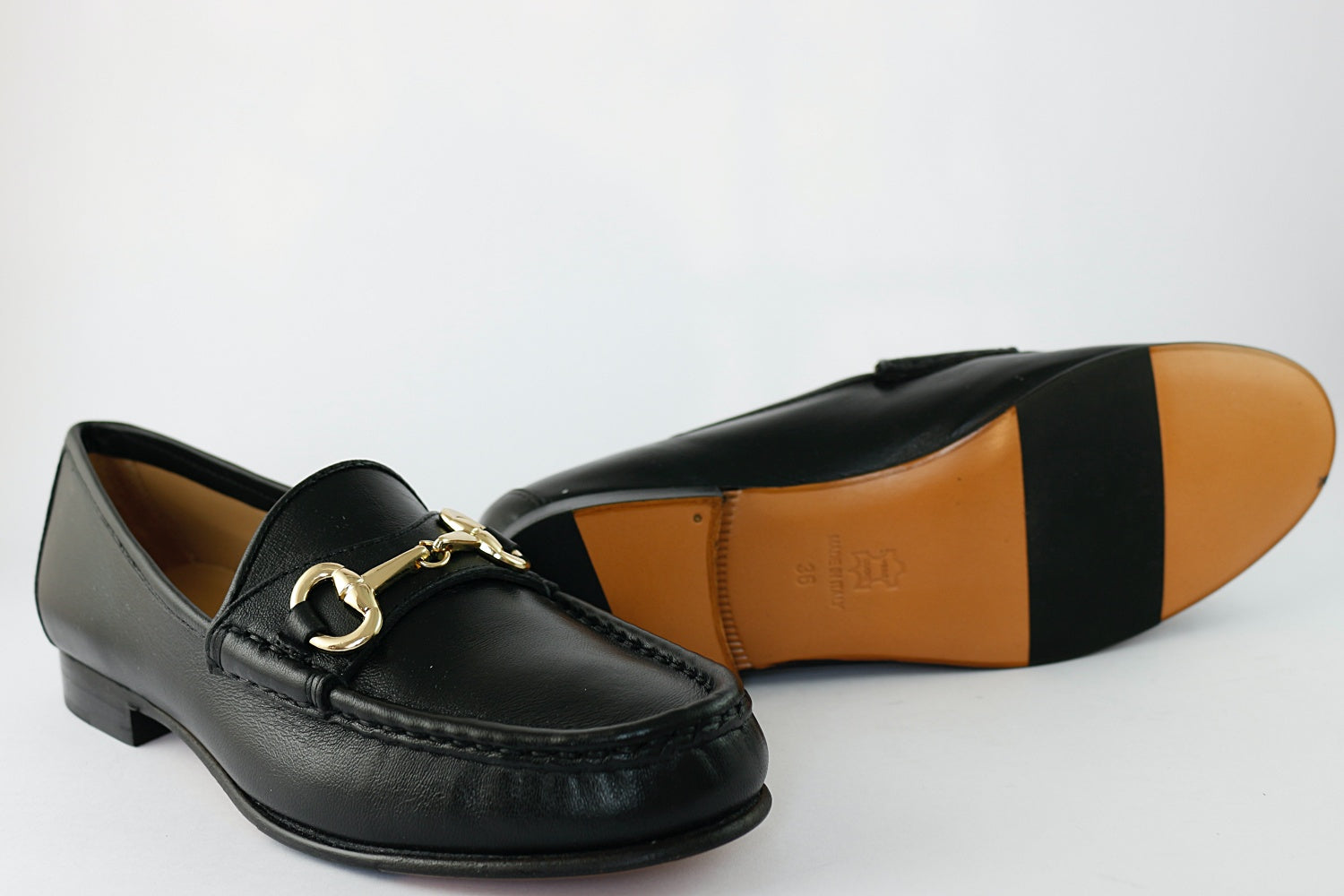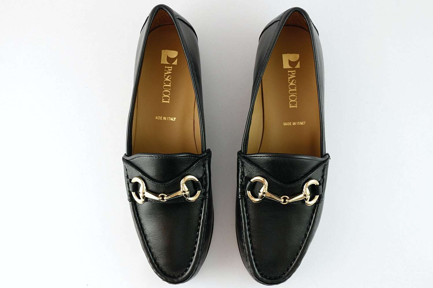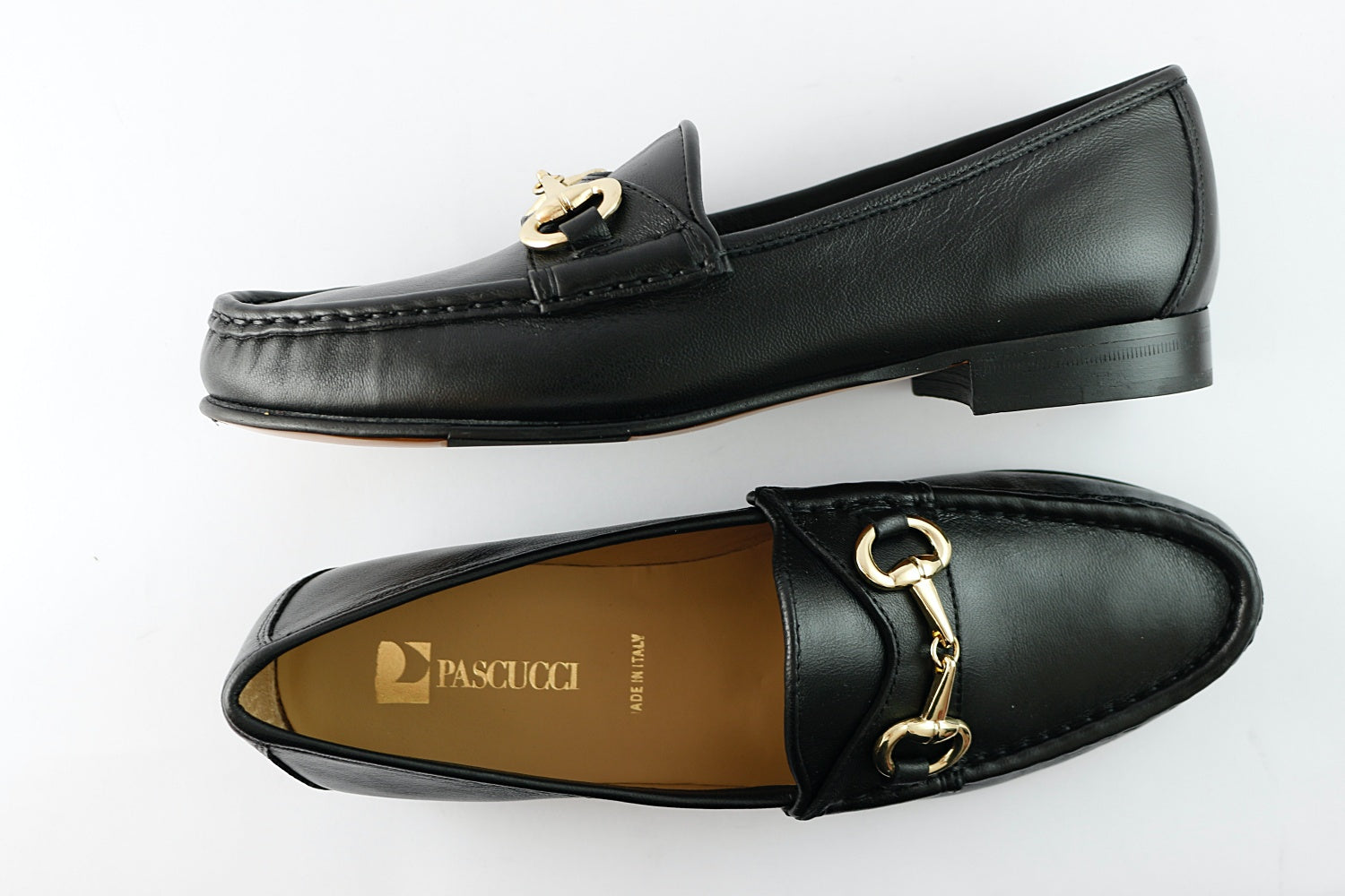 The Pascucci 'Rome' is a classic loafer in Black leather with a gold snaffle. Really soft leather with an almond toe.