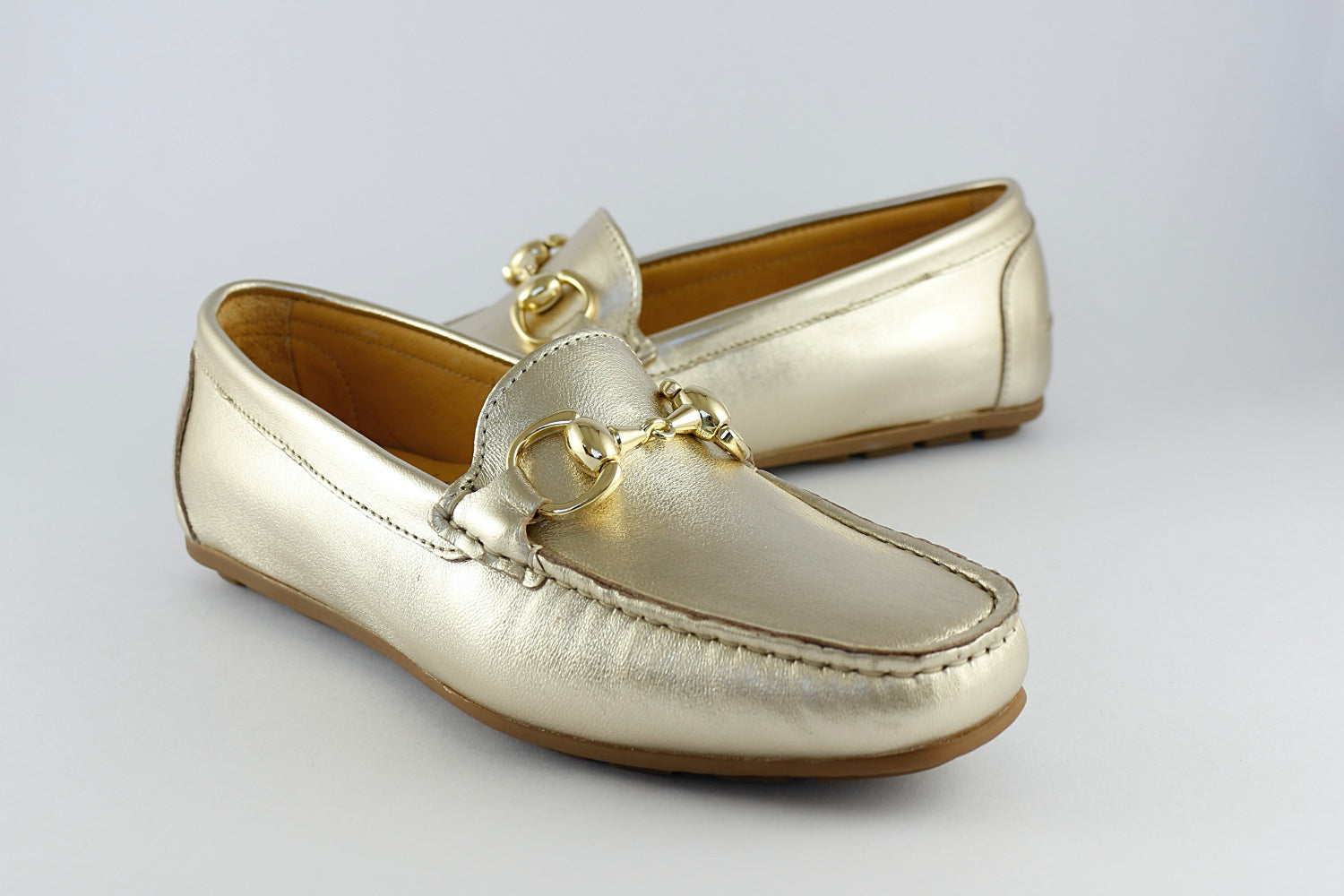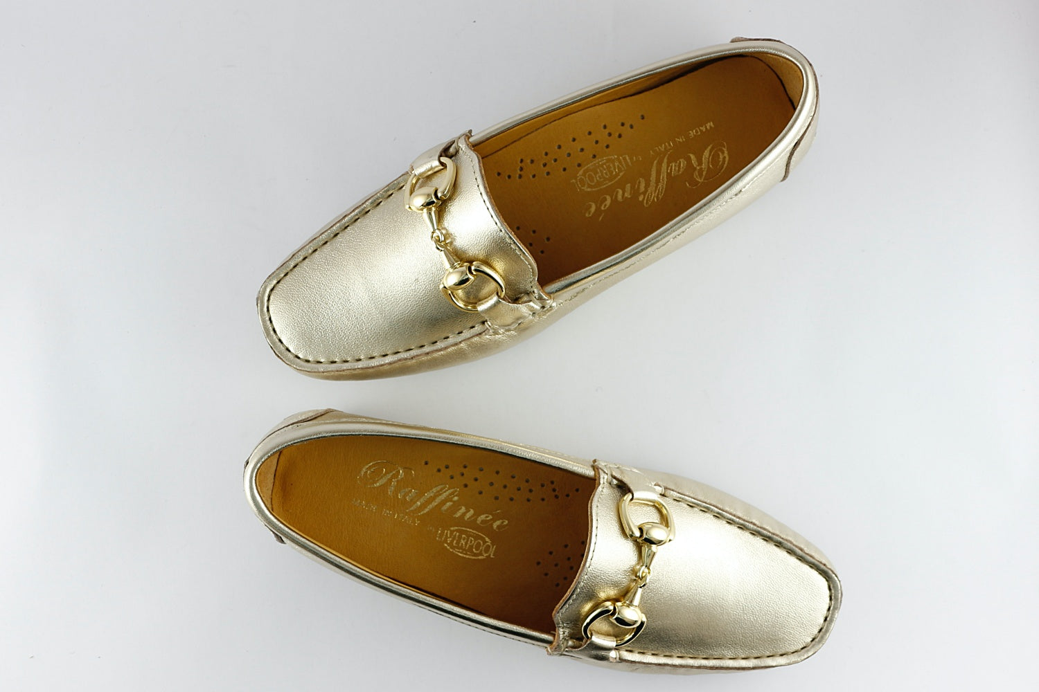 This beautiful soft gold leather loafer is made for us under the Raffinee name by Vittoria Mengoni.